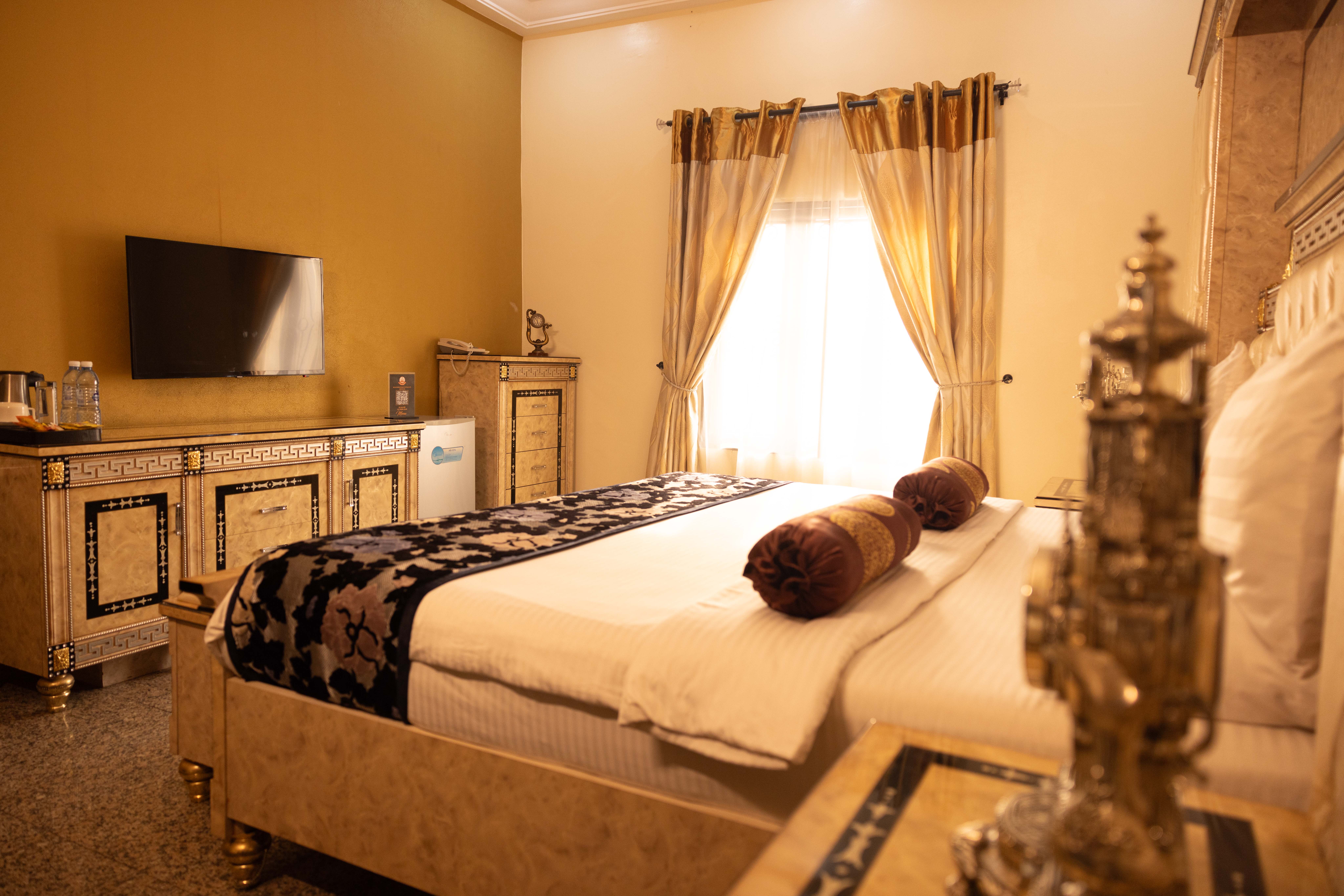 Our Executive Suite is a single room, which has a king-sized bed and a waiting room. It includes all kinds of basic facilities such as a table, chair, desk, cupboard, Television, Telephone, Coffee maker and a private bathroom.